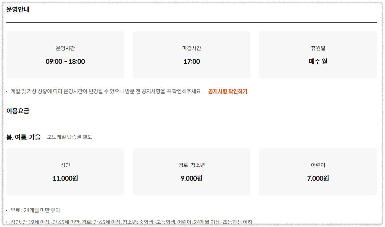 - 운행일 : 화요일 ~ 일요일(월요일 정기휴무)