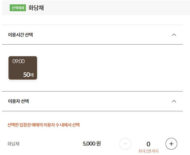 입장권 + 화담채 + 모노레일 입장권 예매 절차